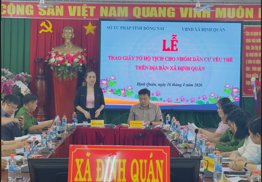 <p style="margin-left:0cm;text-align:justify;">Thực hiện Kế hoạch số 139/KH-UBND ngày 20/10/2025 của Chủ tịch UBND tỉnh, Sở Tư pháp đã ban hành Kế hoạch số 01/KH-STP ngày 07/01/2026 và Quyết định số 08/QĐ-STP ngày 09/01/2026 để thành lập Tổ công tác liên ngành để giải quyết các vấn đề hộ tịch cho nhóm dân cư yếu thế trên địa bàn tỉnh.</p><p style="margin-left:0cm;text-align:justify;">Nhằm đảm bảo quyền lợi hợp pháp và an sinh xã hội cho người dân, với mục tiêu không để ai bị bỏ lại phía sau trong việc tiếp cận các quyền lợi pháp lý, Ngày 16/4/2026, Tổ công tác&nbsp;do bà Nguyễn Thị Hồng Phước - Phó Trưởng phòng Hành chính tư pháp (Sở Tư pháp) làm Tổ phó, cùng đại diện Công an tỉnh đã tiến hành kiểm tra và hướng dẫn nghiệp vụ thực tế tại hai xã: Định Quán và Thanh Sơn.</p><p style="margin-left:0cm;text-align:justify;">Tại buổi làm việc tại xã Định Quán và xã Thanh Sơn, Tổ công tác liên ngành đã ghi nhận nhiều nỗ lực của Tổ công tác tại địa phương, những khó khăn đặc thù tại đây:</p><p style="margin-left:0cm;text-align:justify;">- <strong>Tại xã Thanh Sơn:</strong> Việc thu thập thông tin ban đầu còn gặp nhiều khó khăn, dữ liệu dân cư cung cấp còn sơ sài, chưa thống nhất và nhiều sai sót đối với các trường hợp phức tạp.</p><figure class="image"><img style="aspect-ratio:497/437;" src="https://stp.dongnai.gov.vn/uploads/stp/news/2026_04/image_8.png" width="497" height="437" /></figure><p style="margin-left:0cm;text-align:center;"><i><strong>Quang cảnh buổi làm việc tại UBND xã Thanh Sơn</strong></i></p><p style="margin-left:0cm;text-align:justify;">- <strong>Tại xã Định Quán:</strong> Phát sinh nhiều trường hợp người cao tuổi sinh sống lâu năm nhưng không có giấy tờ tùy thân. Đặc biệt, có nhóm người di cư tự do từ Campuchia về Việt Nam, hiện đang sinh sống trên các làng bè rải rác dọc sông La Ngà trong tình trạng &quot;trắng&quot; giấy tờ.</p><figure class="image"><img style="aspect-ratio:496/420;" src="https://stp.dongnai.gov.vn/uploads/stp/news/2026_04/image_11.png" width="496" height="420" /></figure><p style="margin-left:0cm;text-align:center;"><i><strong>Bà Nguyễn Thị Hồng Phước – Tổ phó Tổ công tác phát biểu tại buổi làm việc tại UBND xã Định Quán</strong></i></p><p style="margin-left:0cm;text-align:justify;">Với phương châm &quot;vướng đâu gỡ đó&quot;, Tổ công tác đã trực tiếp hướng dẫn địa phương cách thức xác minh thông tin, phối hợp với công an các cấp để phục vụ công tác đăng ký hộ tịch.</p><h3>Những tấm giấy khai sinh “muộn” đầy ý nghĩa</h3><p>Sự sát sao của Tổ công tác liên ngành đã mang lại kết quả thiết thực, giúp nhiều trường hợp đặc biệt chính thức có được &quot;tấm giấy thông hành&quot; pháp lý:</p><p style="text-align:justify;"><strong>Ông Nguyễn Thanh Quí (SN 1970)</strong> ngụ tại xã Thanh Sơn và <strong>Bà Trương Thị Mọt (SN 1953)&nbsp;</strong>ngụ tại xã Định Quán, đã chính thức được trao giấy khai sinh sau khi Tổ công tác hướng dẫn địa phương làm rõ nhân thân và quá trình di cư, cư trú phức tạp.</p><figure class="image"><img style="aspect-ratio:520/388;" src="https://stp.dongnai.gov.vn/uploads/stp/news/2026_04/image_10.png" width="520" height="388" /></figure><p style="text-align:justify;"><i><strong>Tổ Công tác tỉnh cùng lãnh đạo địa phương xã Thanh Sơn: Ông Ngô Hoàng Hải (Bí thư xã) và Ông Võ Văn Trung (Chủ tịch xã) trao Giấy khai sinh cho Ông Nguyễn Thanh Quí</strong></i></p><figure class="image"><img style="aspect-ratio:524/352;" src="https://stp.dongnai.gov.vn/uploads/stp/news/2026_04/image_9.png" width="524" height="352" /></figure><p style="text-align:justify;"><strong>&nbsp; &nbsp;&nbsp;</strong><i><strong>Tổ công tác cùng lãnh đạo địa phương trao Giấy khai sinh cho Bà Trương Thị Mọt</strong></i></p><p style="text-align:justify;">Trước đó, vào ngày 02/4/2026, <strong>cụ ông Nguyễn Minh Tơn</strong> cũng đã trở thành trường hợp đầu tiên trên toàn tỉnh được giải quyết cấp giấy tờ hộ tịch theo kế hoạch này.</p><h3 style="text-align:justify;">Quyết tâm bảo vệ quyền lợi cho trẻ em</h3><p style="text-align:justify;">Bên cạnh người cao tuổi, Tổ công tác đặc biệt nhấn mạnh nhiệm vụ rà soát, không để trẻ em nào bị bỏ lại phía sau. Việc kịp thời cấp giấy khai sinh cho trẻ em, nhất là các em trong độ tuổi đến trường, là ưu tiên hàng đầu nhằm đảm bảo quyền học tập và các phúc lợi an sinh xã hội.</p><p style="margin-left:0cm;text-align:justify;"><strong>Bà Nguyễn Thị Hồng Phước - Tổ phó Tổ công tác liên ngành yêu cầu:</strong>&nbsp;</p><p style="margin-left:0cm;text-align:justify;">Các địa phương định kỳ hàng quý phải báo cáo kết quả thực hiện về Sở Tư pháp. Điều này thể hiện sự sát sao của tỉnh Đồng Nai trong việc đồng hành cùng nhóm dân cư yếu thế, giúp họ có được tấm giấy thông hành pháp lý để tiếp cận các dịch vụ y tế, giáo dục và an sinh xã hội một cách công bằng. Đây cũng là bước đi quan trọng để chuẩn hóa dữ liệu dân cư và bảo đảm an sinh xã hội bền vững trên địa bàn tỉnh.</p><p style="margin-left:0cm;text-align:justify;">&nbsp;</p><p style="ma
