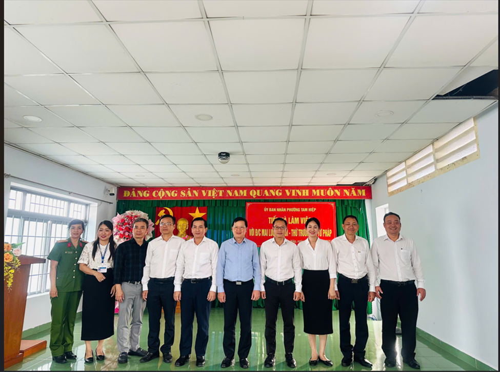 Chiều ngày 15/9/2025, Thứ trưởng Bộ Tư pháp Mai Lương Khôi đã dẫn đầu Đoàn công tác Bộ Tư pháp gồm đại diện lãnh đạo Cục Hành chính tư pháp và Cục Công nghệ thông tin - Bộ Tư pháp, Cục Cảnh sát quản lý hành chính về trật tự xã hội, Cục Quản lý xuất nhập cảnh - Bộ Công an đến tỉnh Đồng Nai để nắm bắt tình hình, lắng nghe và tháo gỡ những khó khăn, vướng mắc trong việc thực hiện mô hình chính quyền địa phương 2 cấp và chuyển đổi số trong lĩnh vực hộ tịch tại UBND phường Tam Hiệp và Biên Hòa.