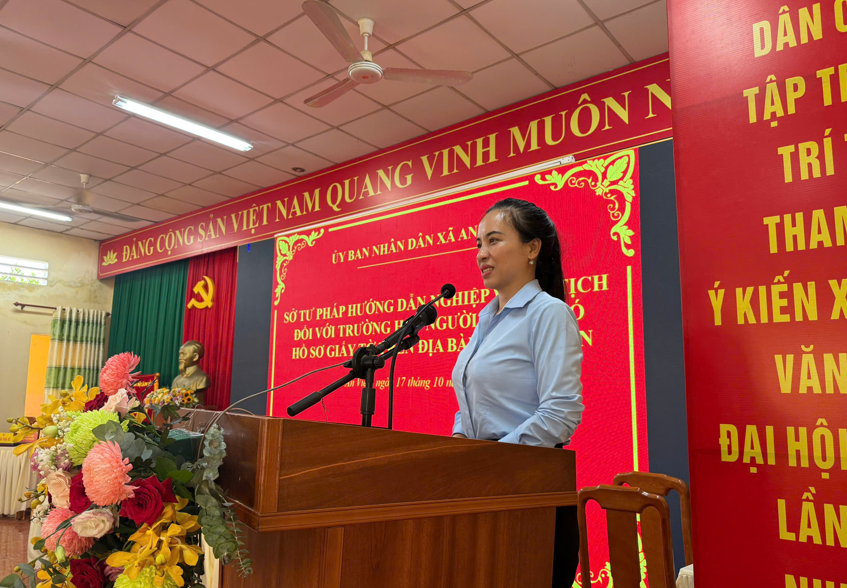 Ngày 17/10/2025, Sở Tư pháp cử bà Nguyễn Thị Hồng Phước – Phó phòng Hành chính tư pháp – Đại diện Sở Tư pháp đến UBND xã An Viễn trực tiếp hướng dẫn, hỗ trợ nghiệp vụ hộ tịch cho chuyên viên phụ trách hộ tịch của xã An Viễn.