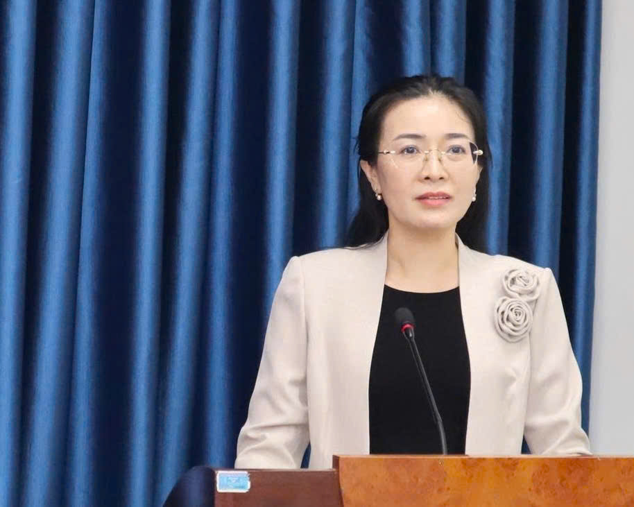 Giám đốc Sở Tư pháp Phạm Thị Bích Thủy chủ trì và phát biểu tại hội nghị
