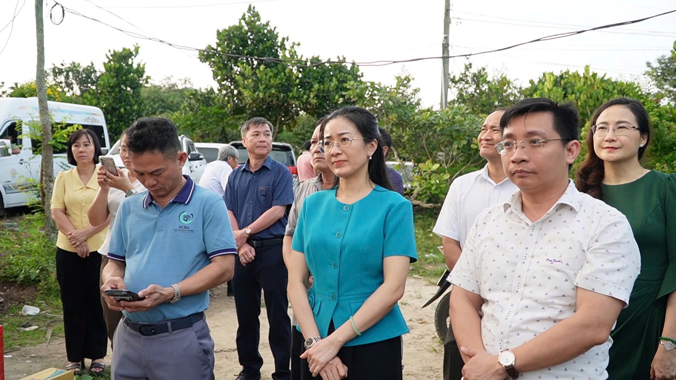 Bà Phạm Thị Bích Thủy – Giám đốc Sở Tư pháp và ông Võ Văn Tươi - Phó Bí thư thường trực Đảng ủy trao nhà Đại đoàn kết